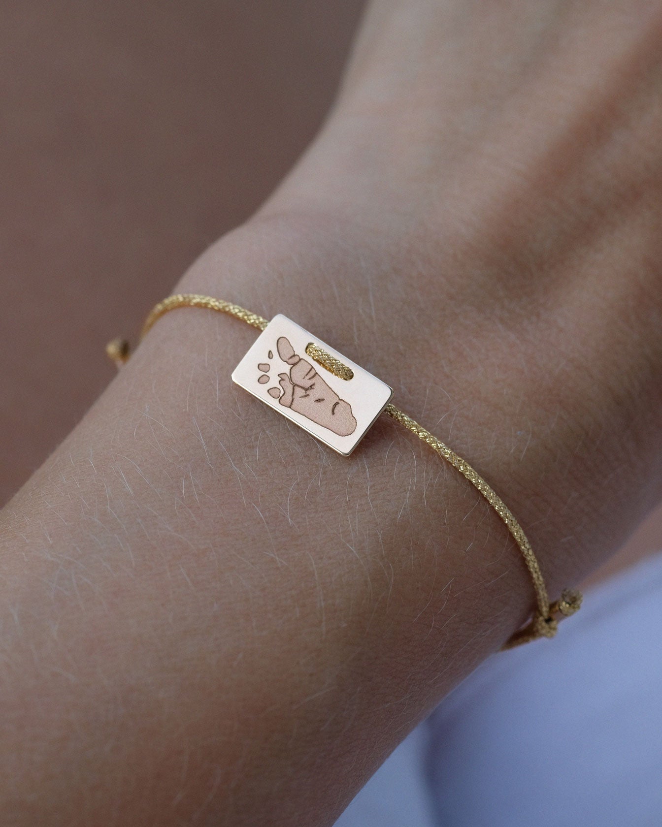 Baby Footprint Wristband made using your loved ones’ actual footprint. Available in 14K Rose Gold, 14k yellow gold and 14k white gold. Also available with a diamond.