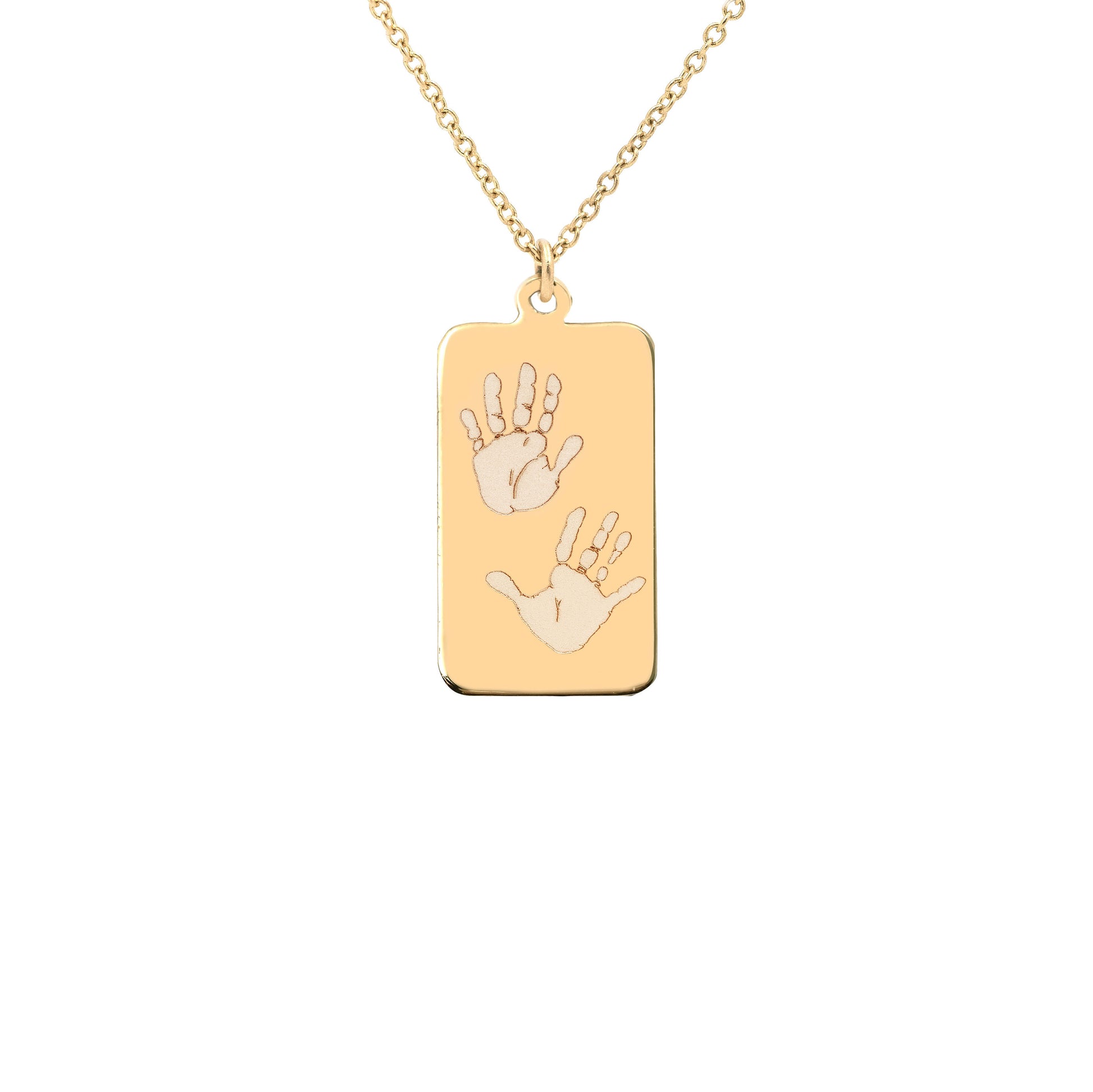 Baby & Kids Handprints / Footprints Tag Necklace in solid 14k yellow or white gold made using your loved ones’ actual prints.